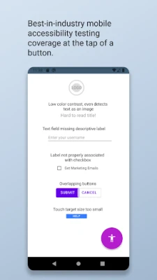 Initiate your own scans whenever you’d like. Get clear explanations of issues found along with accurate remediation advice. Use the mobile dashboard to share and organize your results, get an accessibility score, and dig into detailed results which include the captured view properties.