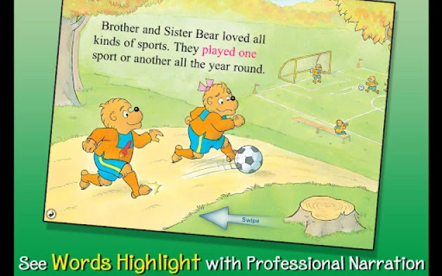 Join the Berenstain Bears in this interactive book app as Papa Bear coaches the cubs' soccer game! Explore pictures, learn new vocabulary, and follow along with three fun ways to read! When Coach Papa Bear wants the team to play fair but the other coach just wants to win, how will the cubs learn an important lesson about sportsmanship for young and old alike?