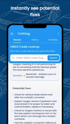 The "Check Engine" light can be daunting, but with CarDaig OBD2 Fault Fix, you're empowered to understand what's going on under the hood. Our app serves as your essential digital assistant for decoding OBD2 Diagnostic Trouble Codes (DTCs). Simply enter the code you've retrieved from your car's OBD2 scanner, and let CarDaig provide you with clear explanations and actionable insights.