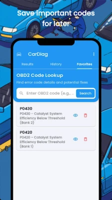 Enter Code: Open CarDaig OBD2 Fault Fix and type in the OBD2 code (e.g., P0420, P0301).