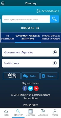 This application is a service provided by the Fijian Government. It offers an integrated mobile application that provides access to the Fijian Government Directory and many other applications to be built on it. It allows a single sign on experience to facilitate interaction with the Fijian government.