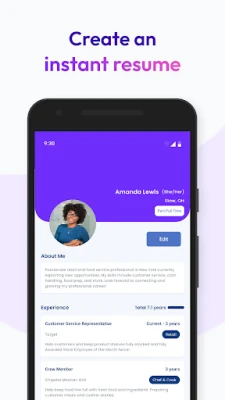 Find jobs in your area and apply with a single tap. You’ll hear back from employers within 24 hours, and many will offer interviews on the spot!