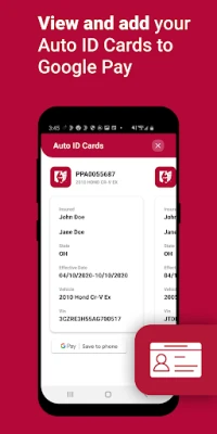 • Save your insurance auto ID card to your Google Wallet for easy retrieval