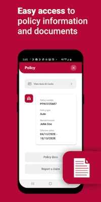 • Easy access to policy information and documents, including auto ID cards
