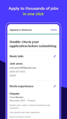 Apply to jobs with just one click and see application status updates
