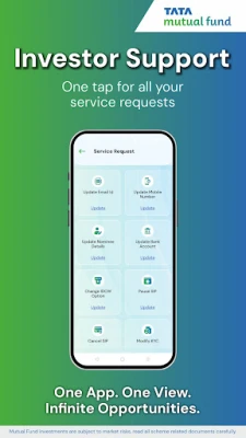 The Tata Mutual Fund App aims to make your mutual fund investing experience seamless and smarter. With over 30 years of expertise in managing money and serving over 59 lakh investors and 71 lakh+ folios, the app brings tracking your investments, learning, and investing in one easy-to-use platform.